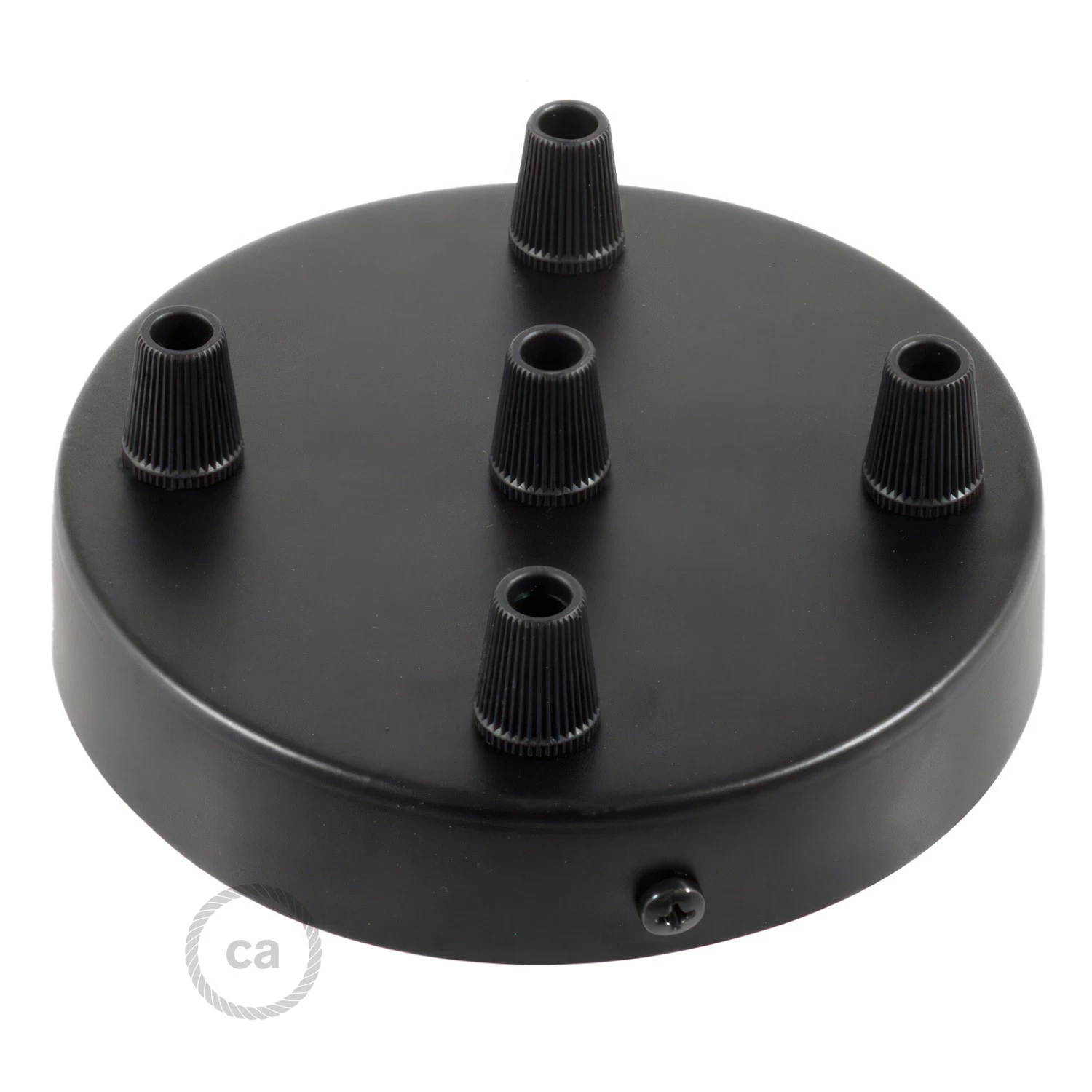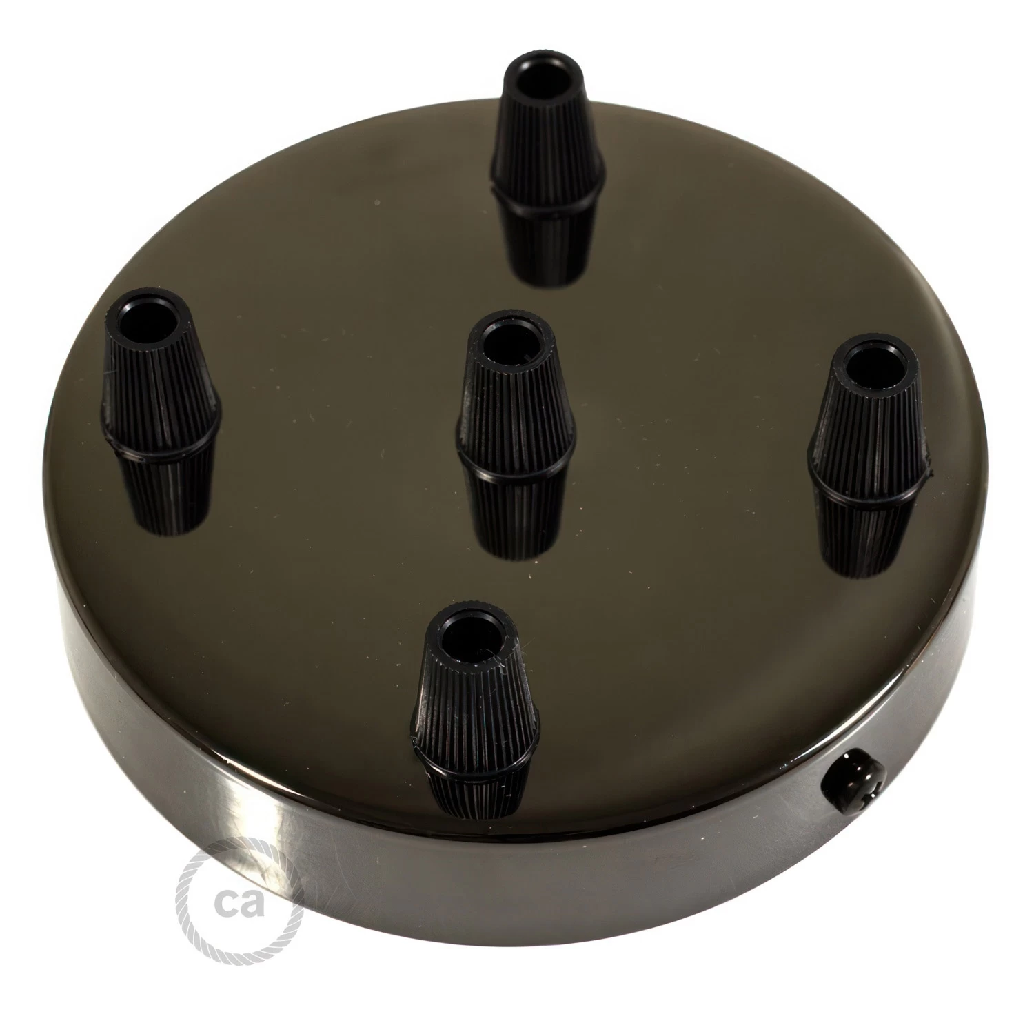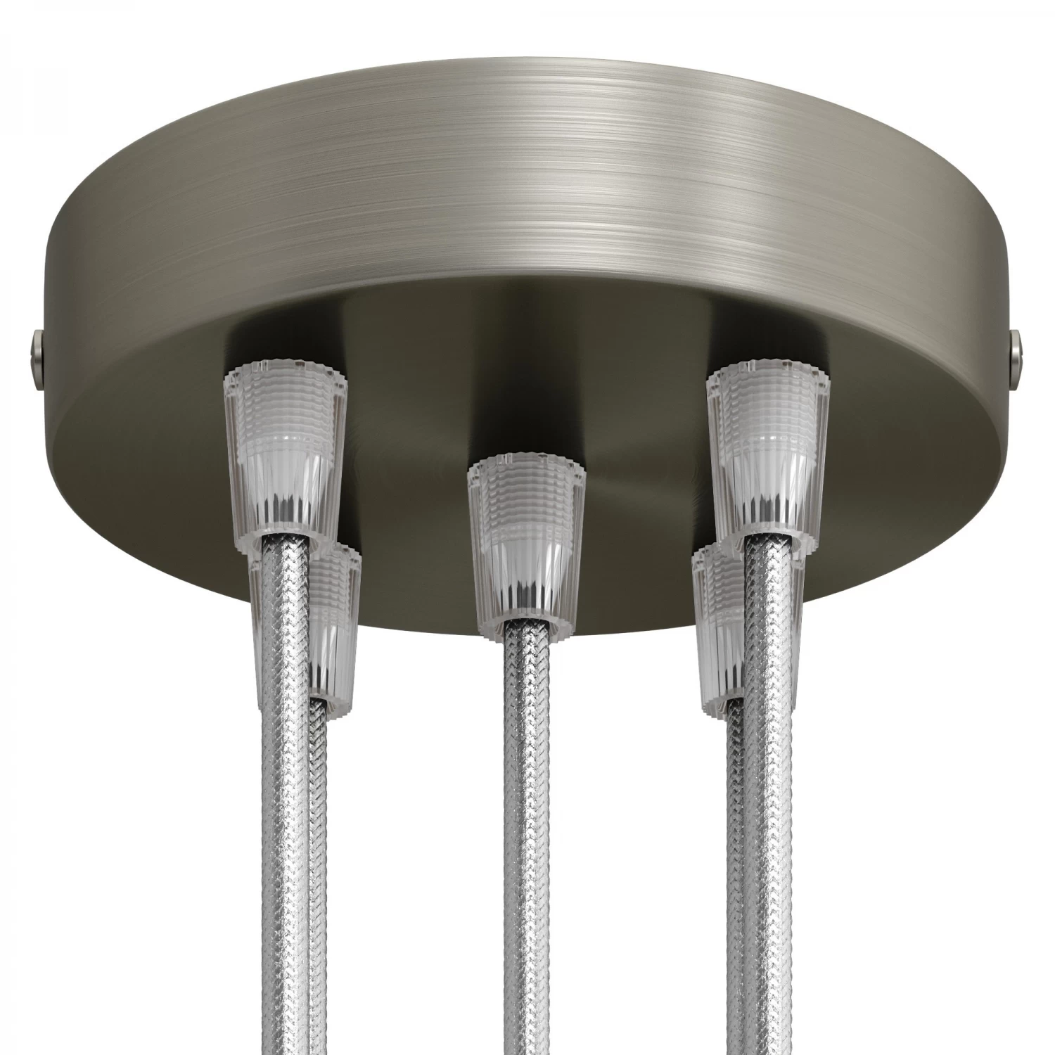 Just choose the color and style of the 5-hole ceiling canopy that you want and then select the type of cable strain relief that you’d like us to include with your canopy. The basic cable strain relief is a plastic Conical haped design. For a more refined look go with the Cylindrical cable strain relief option. All of the cylindrical cable strain reliefs are metal, except for the one that matches the gloss white canopy, which is plastic. (To better match the color of the gloss white.)