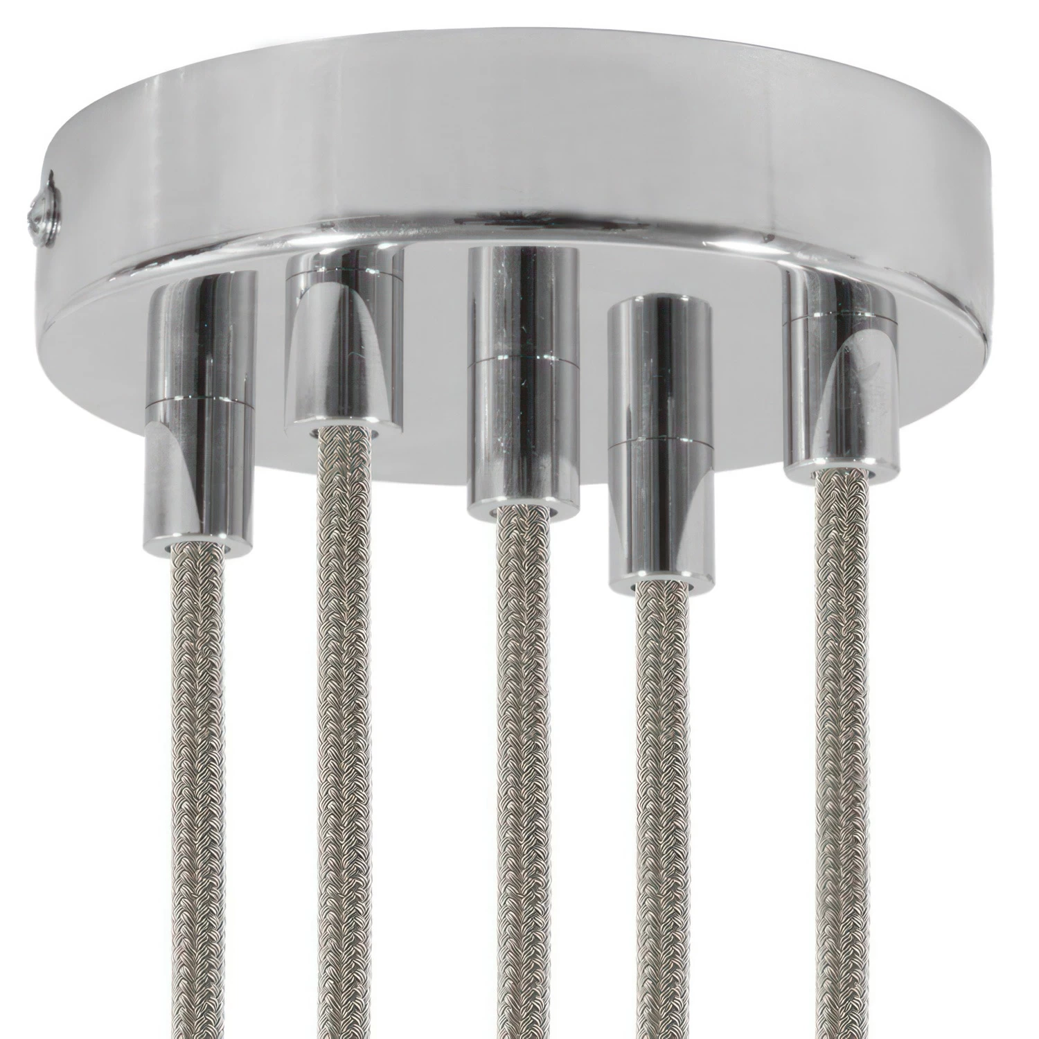 Our classic ceiling canopies. These 5-hole canopies are beautiful and easy to use while providing a sleek and stylish look. They can be used to make your own mulit-hole pendant light, hanging swag chandelier or to replace an existing multi-pendant light ceiling canopy.