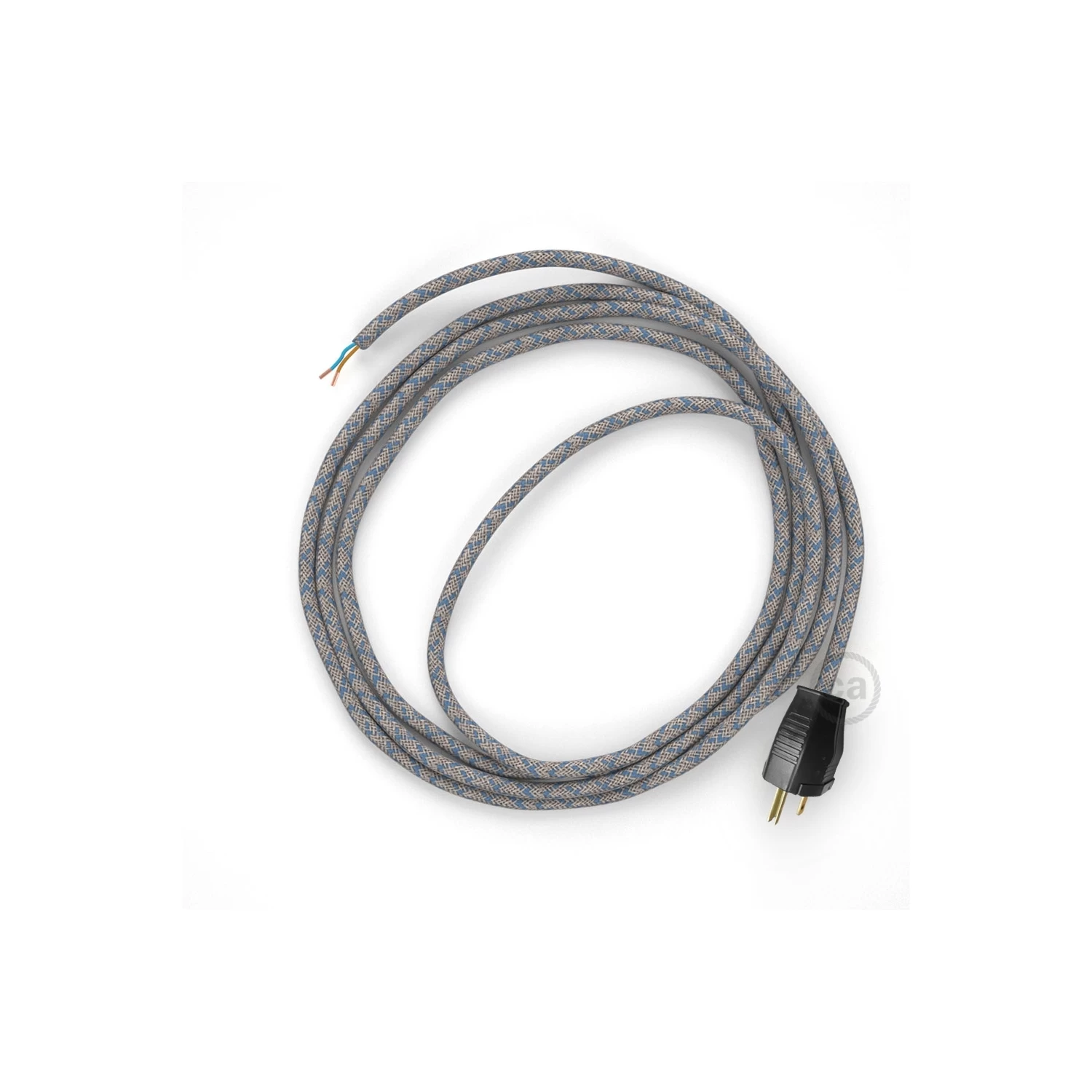 Our RD65 Natural & Blue Linen Criss Cross cable cord-set with 3 prong plug is a perfect solution.