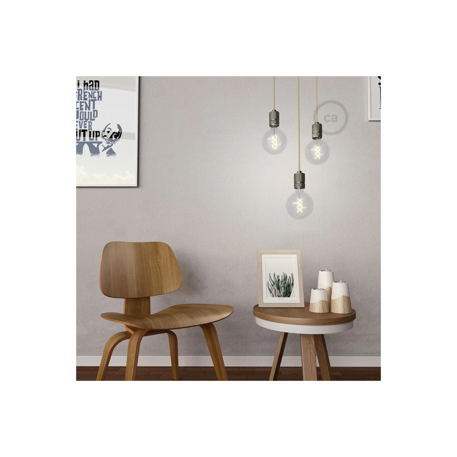 The socket kit is provided with a cable clamp. Thanks to the ferrule, you can actually use it with all E26 lampshades: we personally like to match its gunmetal grey finish with our enamelled metal lampshades or the naked cage lampshades!