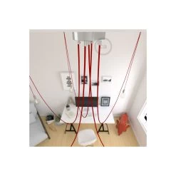 Spider, Multiple Suspension With 5 Pendants, Chromed Metal, RM09 Red Cable