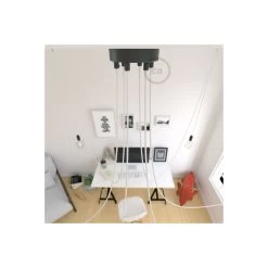 Spider, Multiple Suspension With 6 Pendants, Black Metal, RM01 White Cable