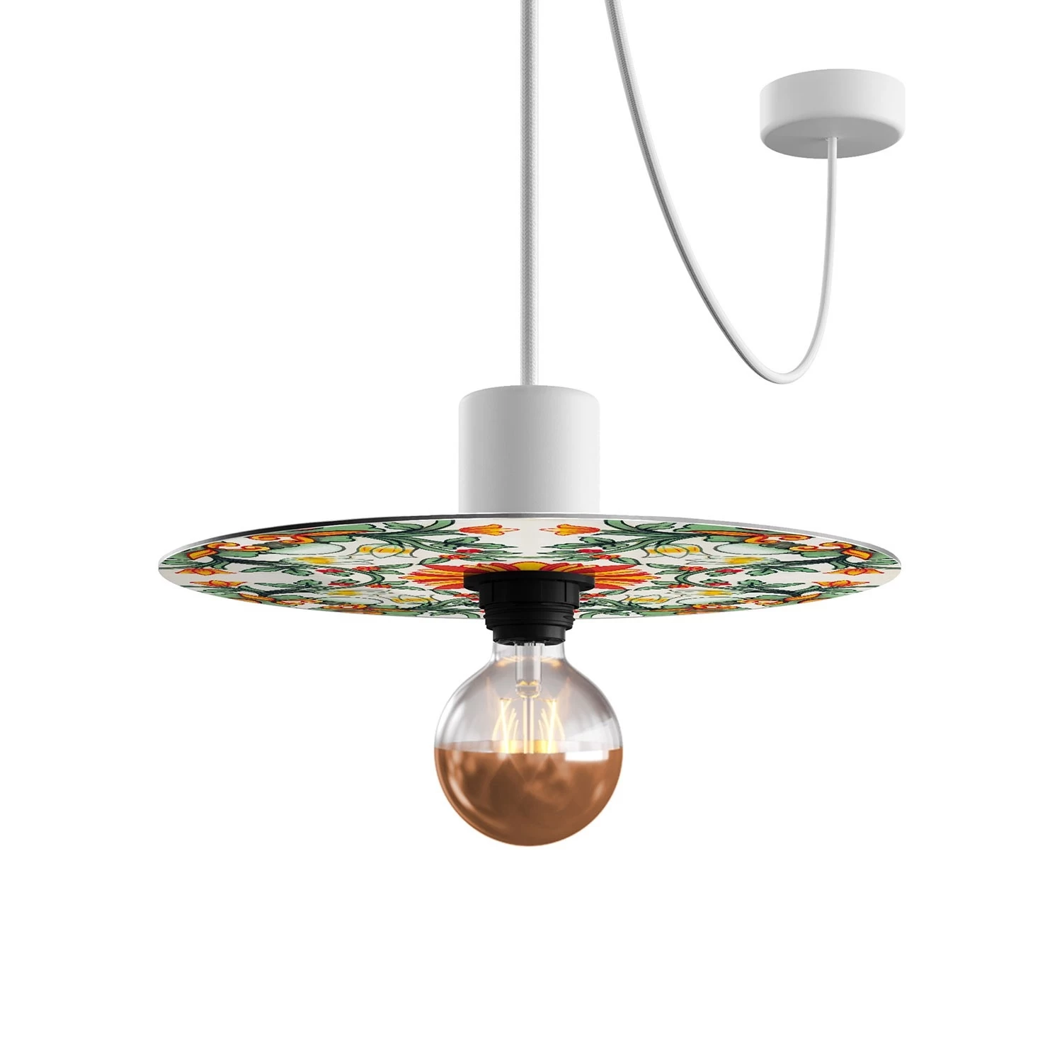 The mini flat lampshade comes in colourful floral patterns as well as elegant black/white options – and a 24 cm diameter – embellishing any wall or suspension lamp. The lampshade has been 100% made in Italy from our incomparable Dibond®, a light yet sturdy material able to withstand any weather.