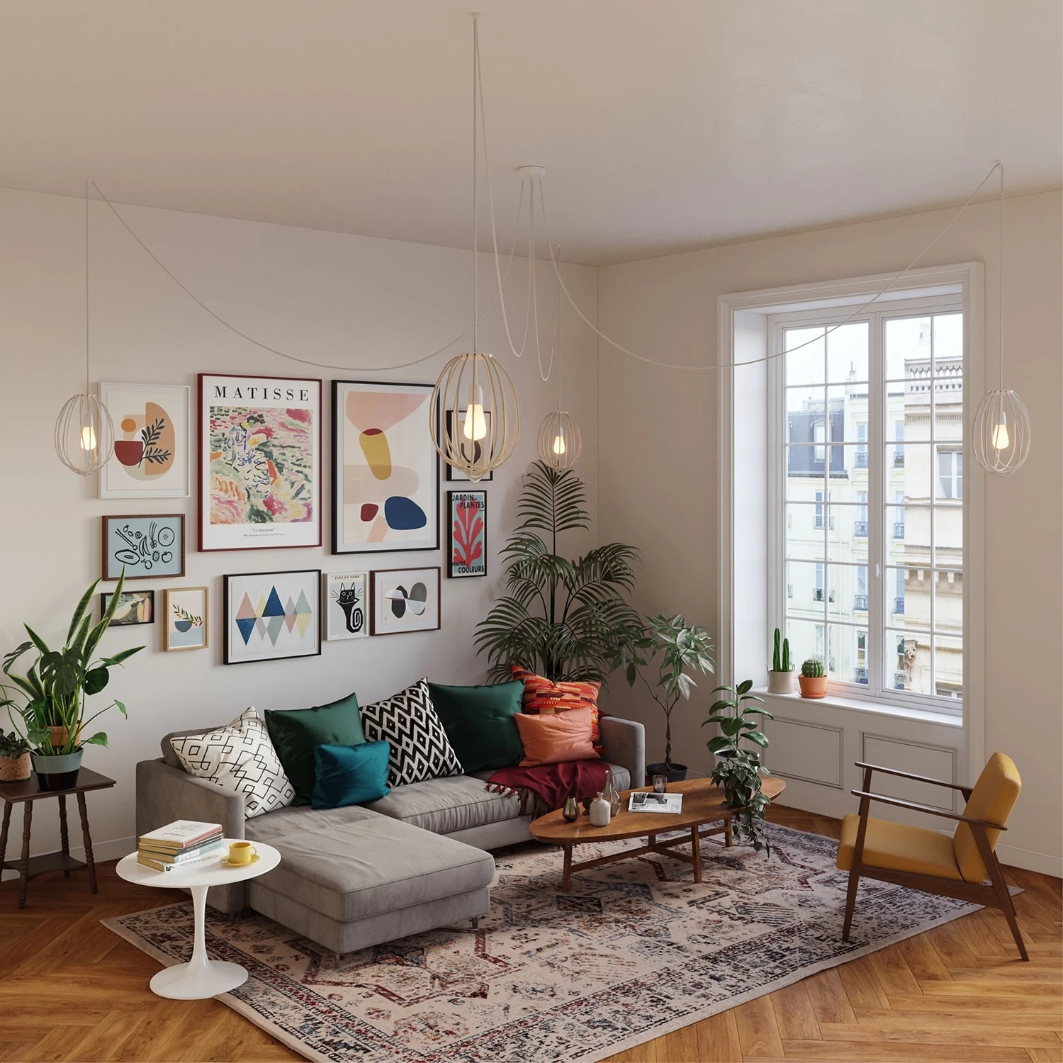 Lozenge cables come in many different colourful tones, or you can keep it simple with a snowy white one. Either way, you will receive Cablò in the multicoloured version along with seven 100 cm fabric cables, that will help you create a lampshade to match your every mood; from intriguing geometrical figures to charming floral allure.