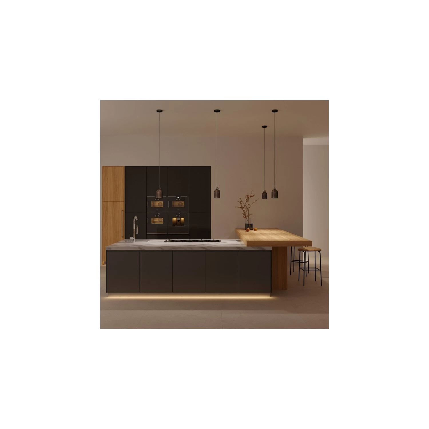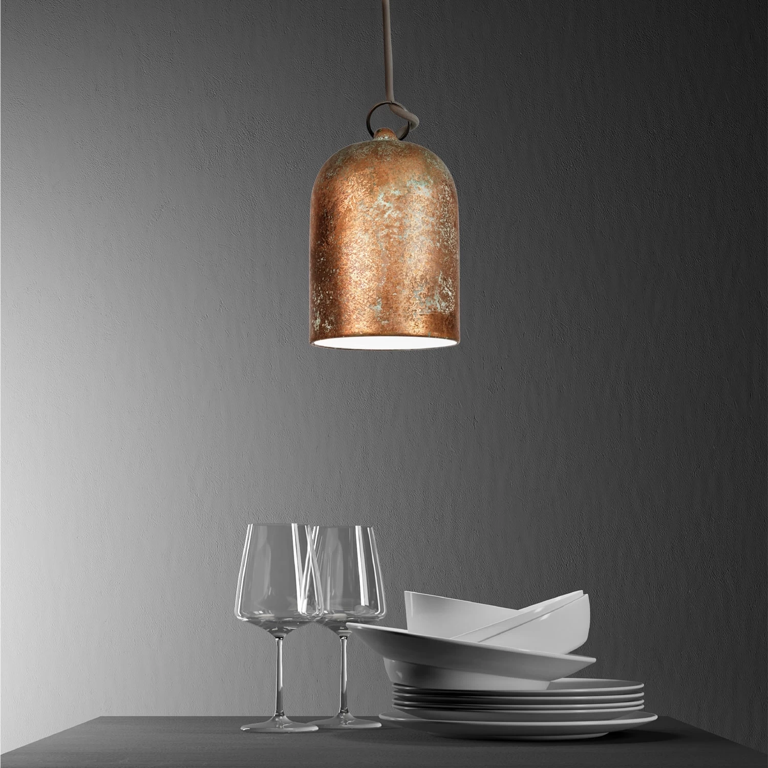 The Bell XS pendant lamp with lampshade with its refined and original style is perfect to be used in series and illuminate the counter of a kitchen or to create original suspensions over tables and in refreshment areas by combining Bell XS with its larger sisters of the most important dimensions.