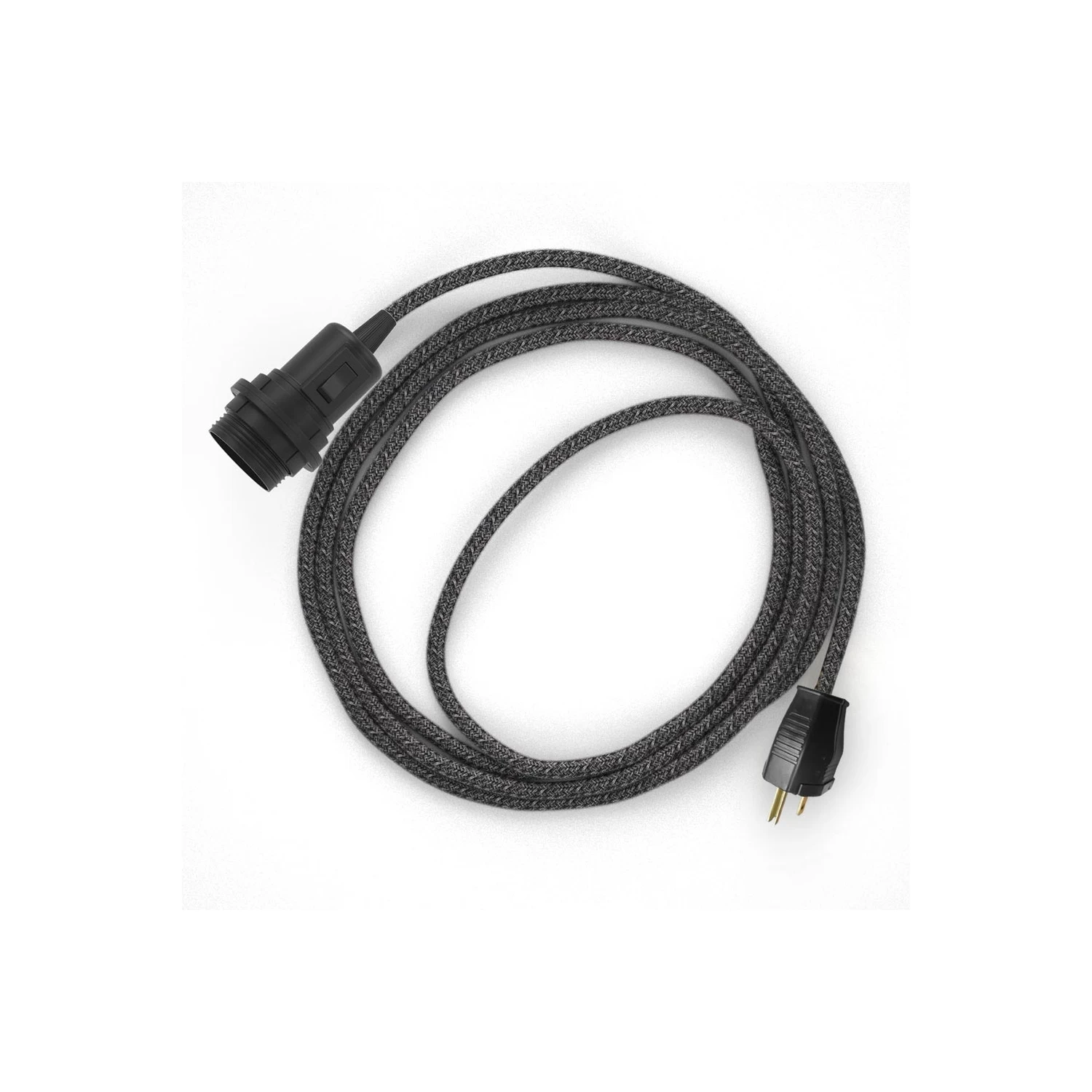 Plug-in Pendant For Lampshade With Switch On Socket | RS81 Black Glitter Cotton & Natural Linen Tweed