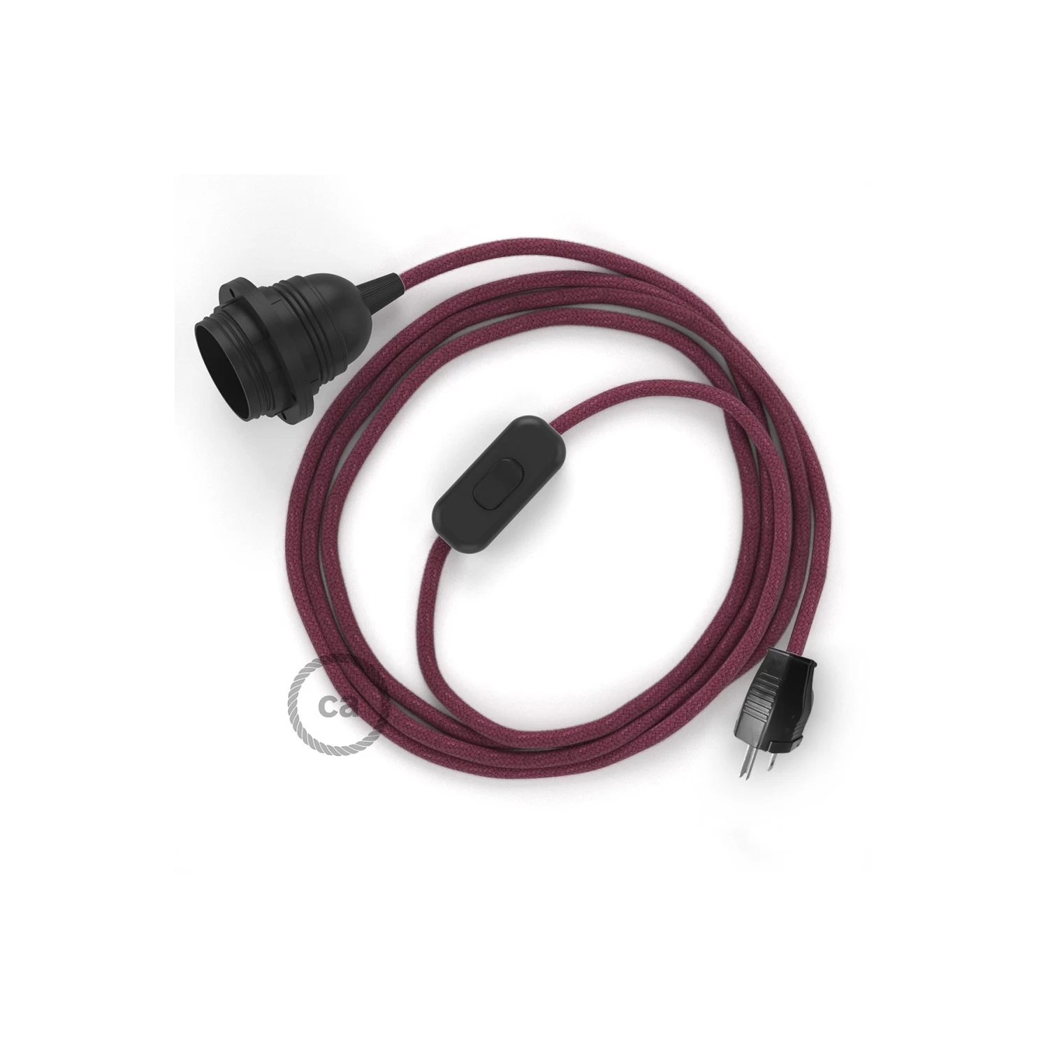 Our SnakeBis plug in pendant light with cloth wire in Raspberry Cotton RC32 with inline on/off switch works wonderfully as a pendant light or a plug in table lamp.