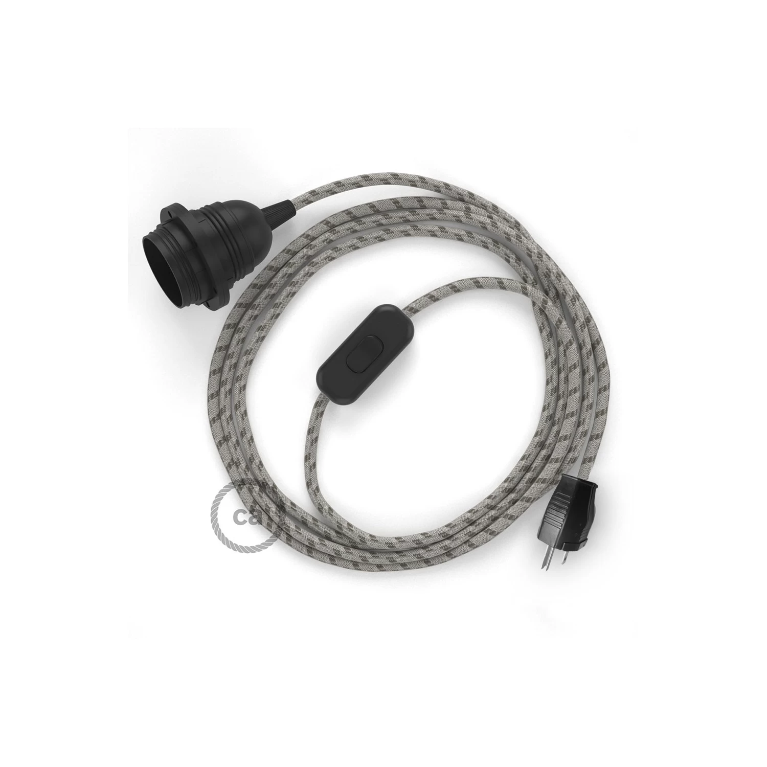 Our SnakeBis plug in pendant light with cloth wire in Natural & Brown Linen Stripe RD53 with inline on/off switch works wonderfully as a pendant light or a plug in table lamp.