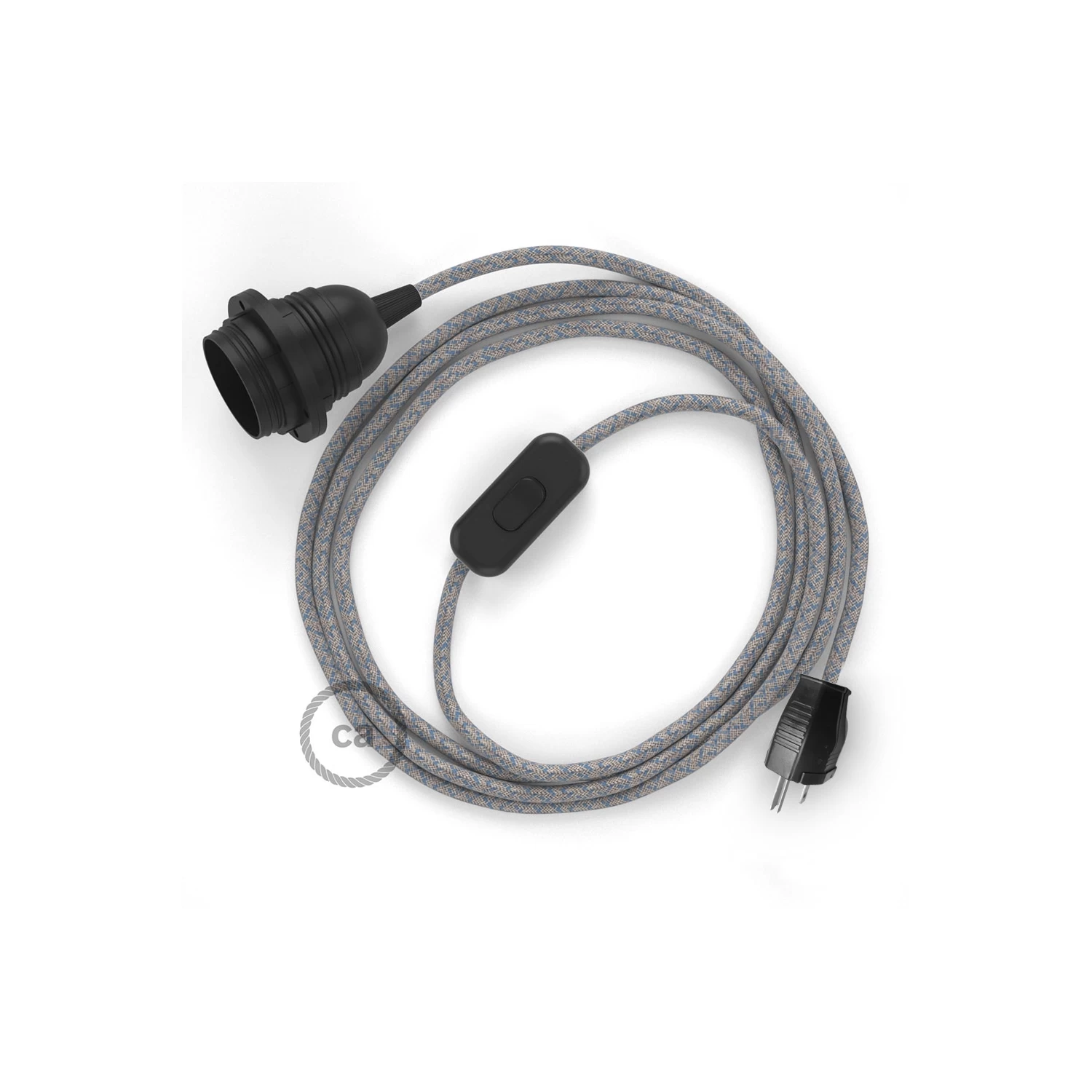 Our SnakeBis plug in pendant light with cloth wire in Natural & Blue Linen Criss Cross RD65 with inline on/off switch works wonderfully as a pendant light or a plug in table lamp.