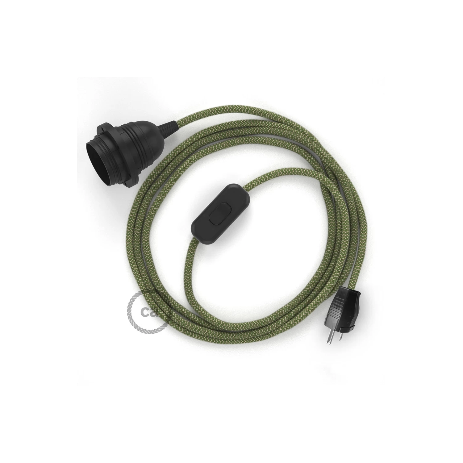 Our SnakeBis plug in pendant light with cloth wire in Natural & Thyme Green Linen Chevron RD72 with inline on/off switch works wonderfully as a pendant light or a plug in table lamp.
