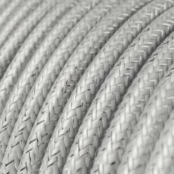 Our SnakeBis plug in pendant light with cloth wire in Silver Glitter RL02 with inline on/off switch works wonderfully as a pendant light or a plug in table lamp.