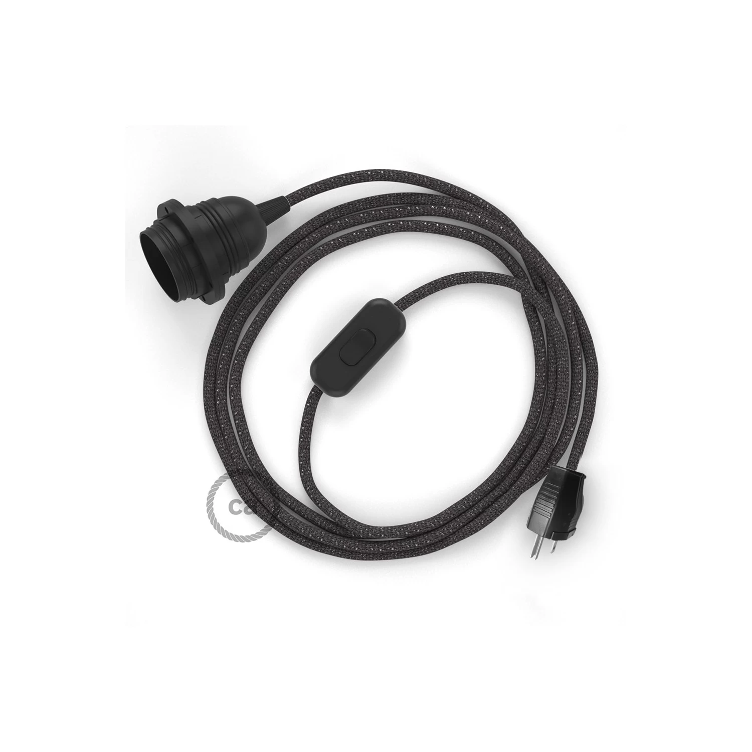 Our SnakeBis plug in pendant light with cloth wire in Gray Glitter RL03 with inline on/off switch works wonderfully as a pendant light or a plug in table lamp.