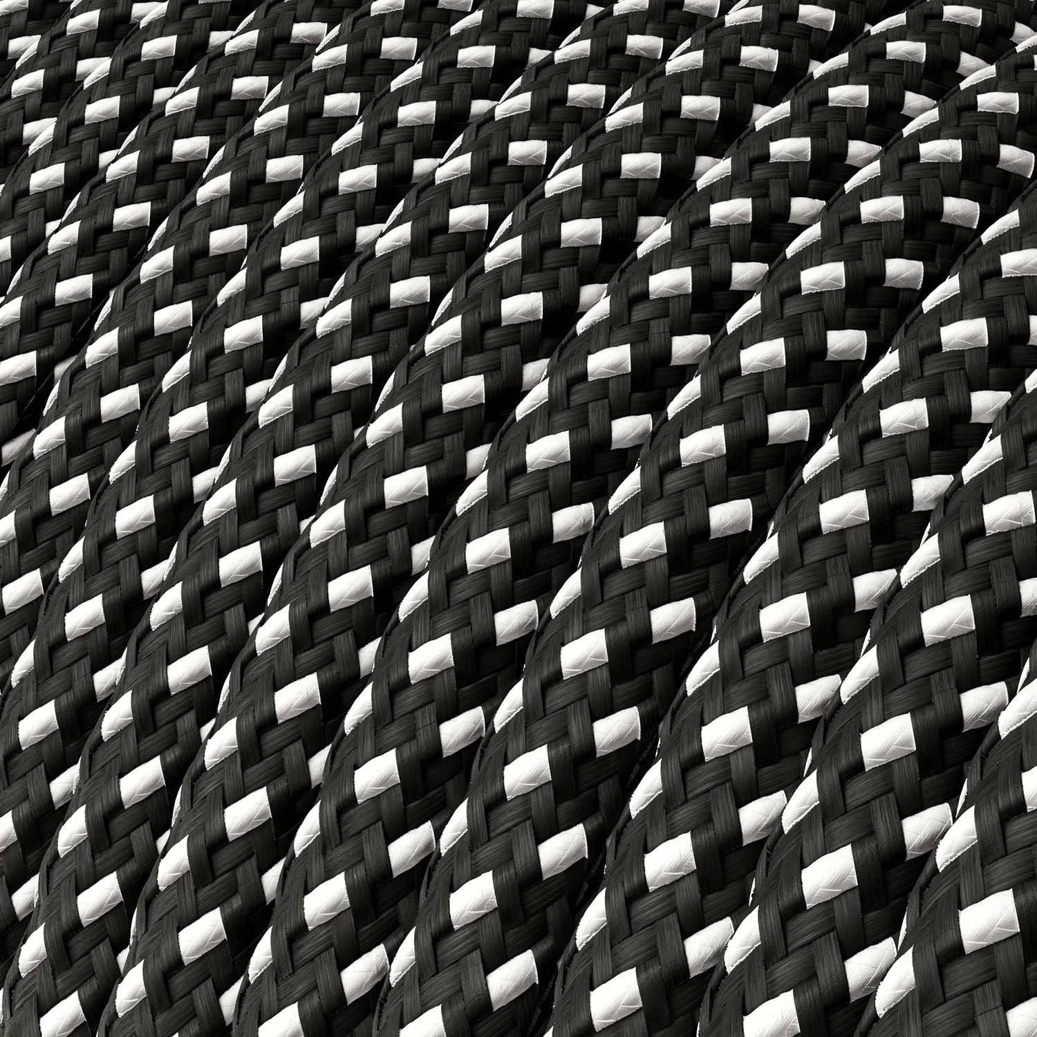 Our SnakeBis plug in pendant light with cloth wire in Black & White Tracer RT41 with inline on/off switch works wonderfully as a pendant light or a plug in table lamp.