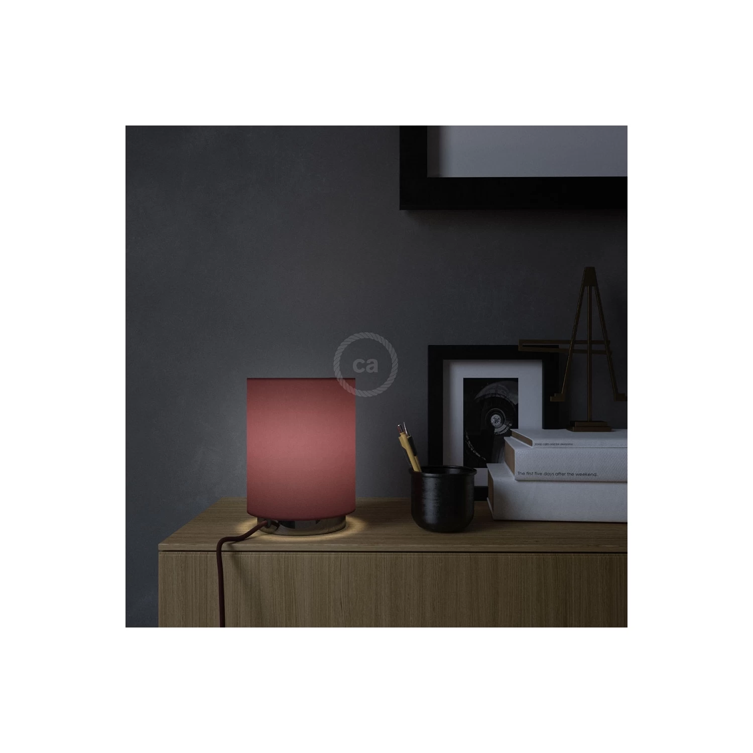 Black pearl metal Posaluce with burgundy canvas Cylinder lampshade is completed by the Burgundy Rayon RM19 cable and is equipped with switch and plug.
