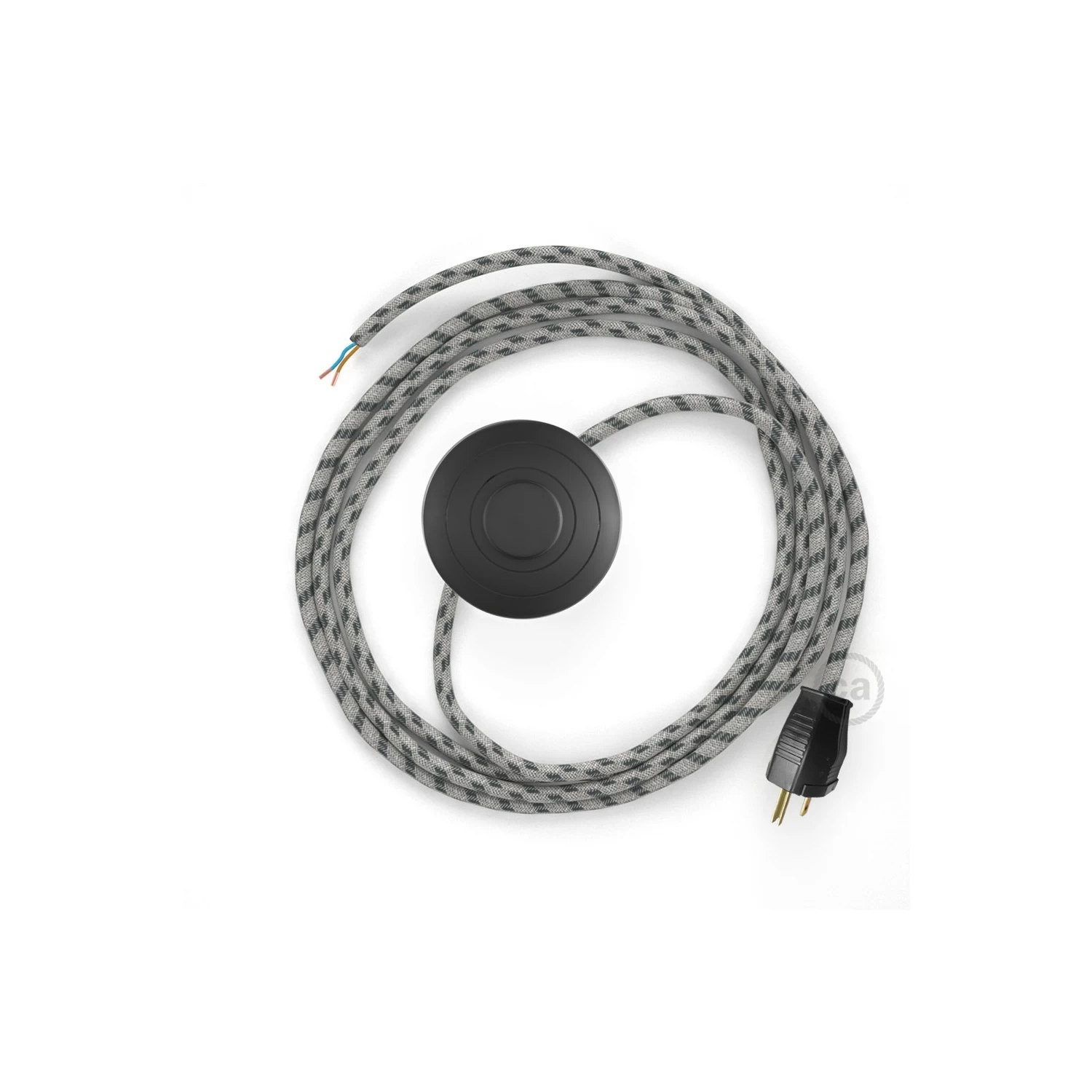 Add some color to your floor lamp thanks to the RD54 Natural & Charcoal Linen Stripe Round fabric cable, complete with switch and plug.