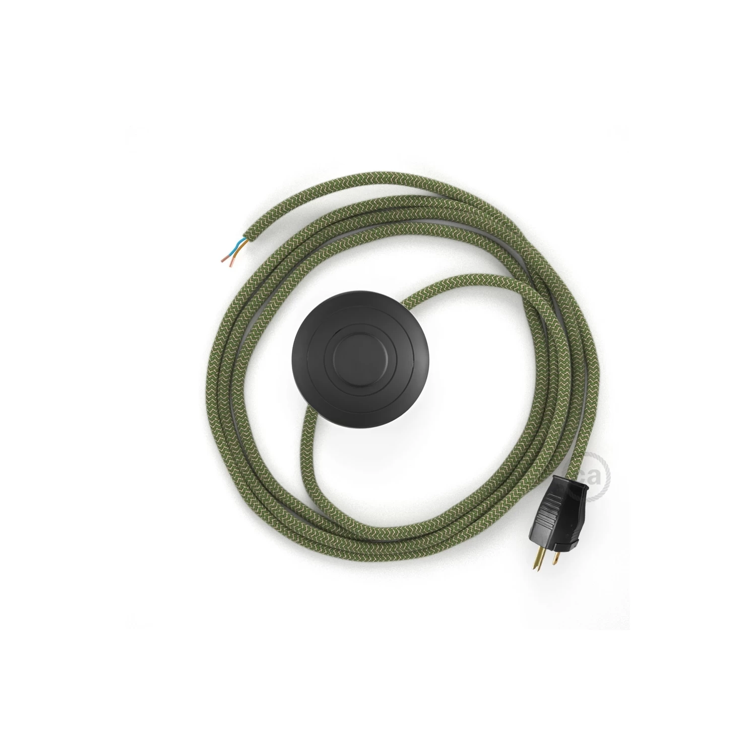 Add some color to your floor lamp thanks to the RD72 Natural & Thyme Green Linen Chevron Round fabric cable, complete with switch and plug.