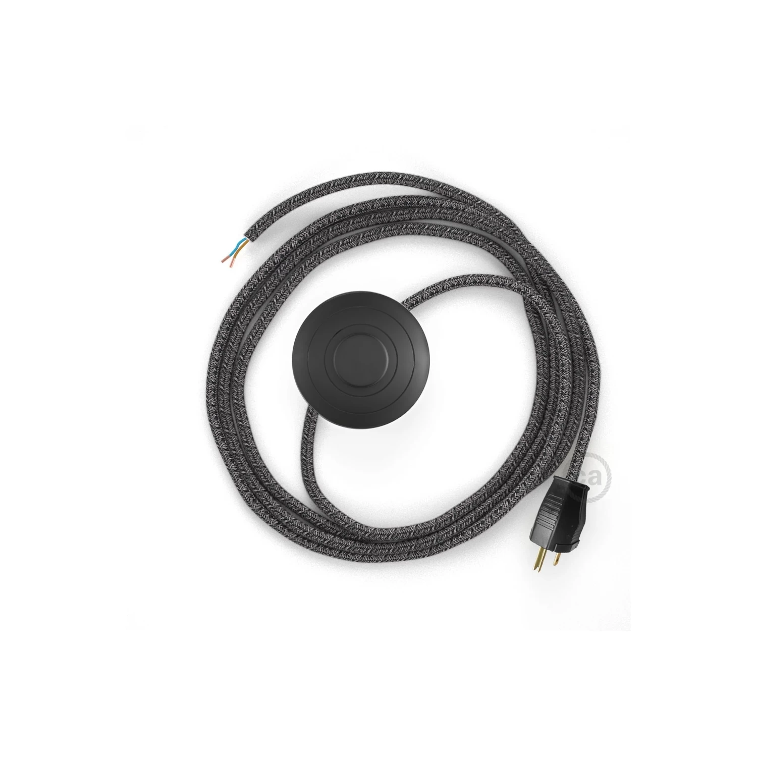 Add some color to your floor lamp thanks to the RS81 Black Glitter Cotton & Natural Linen Tweed Round fabric cable, complete with switch and plug.