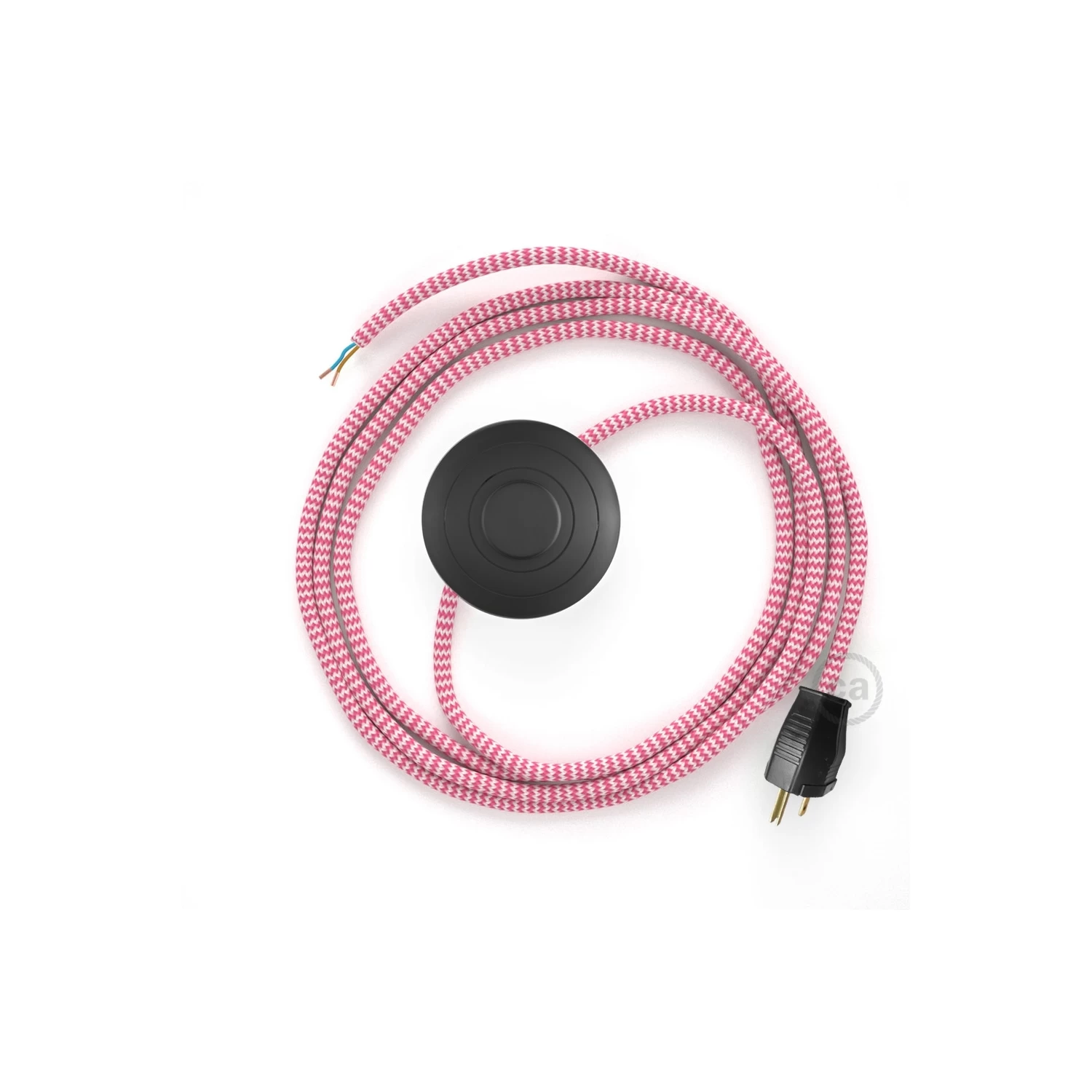Add some color to your floor lamp thanks to the RZ08 Fuchsia & White Chevron Round fabric cable, complete with switch and plug.