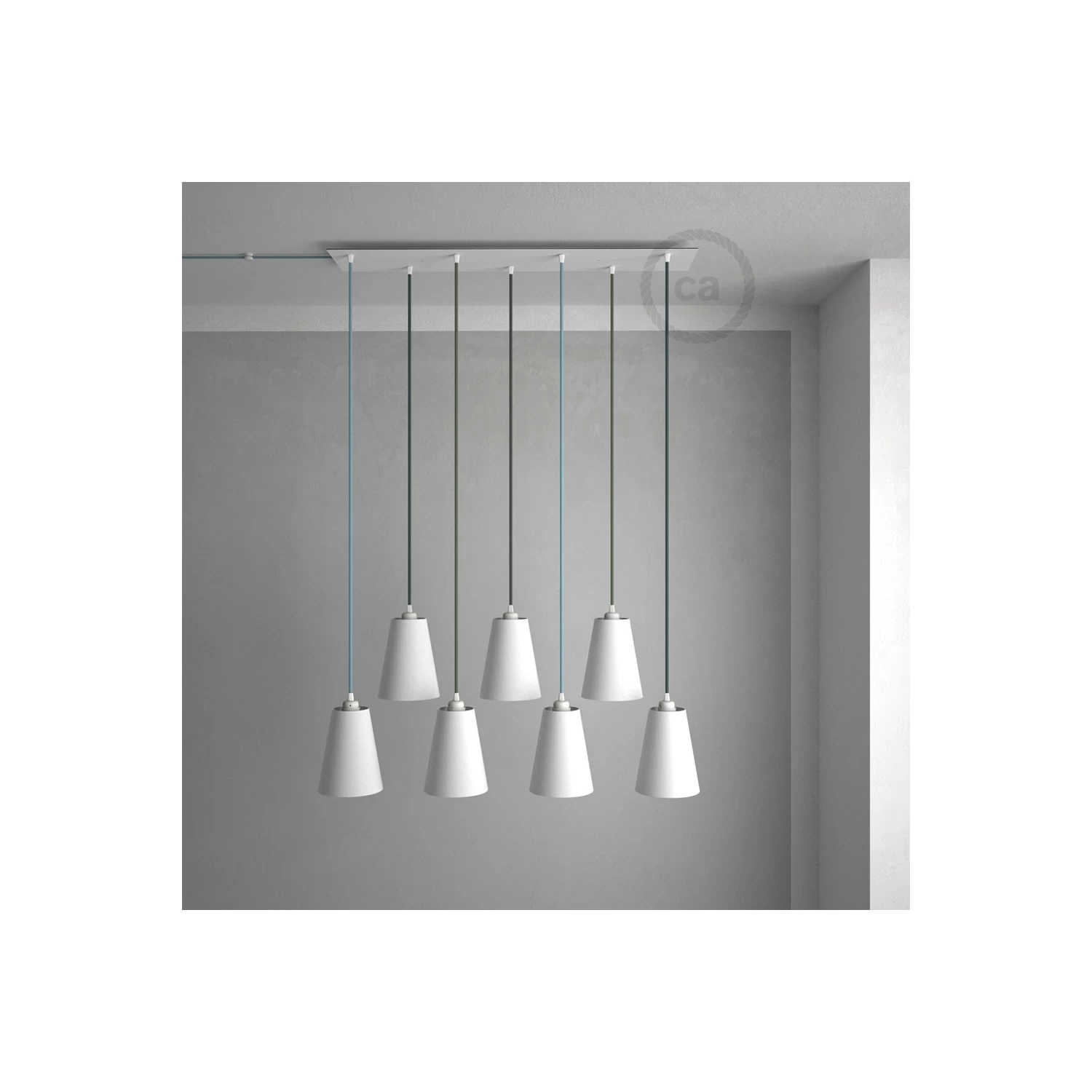The rectangular 35.40×7.90″ ceiling rose with 7 holes is perfect for designing double pendant lamps.