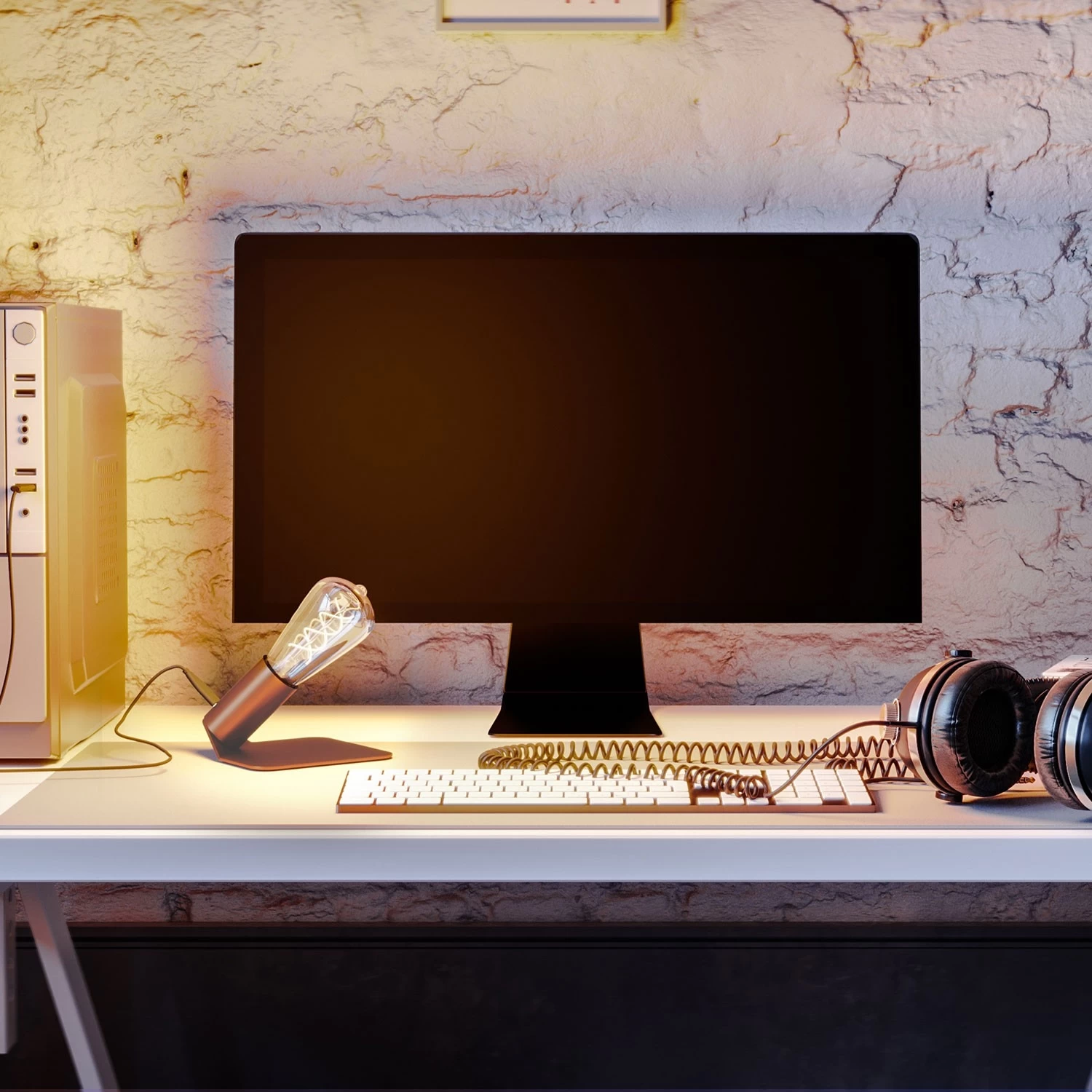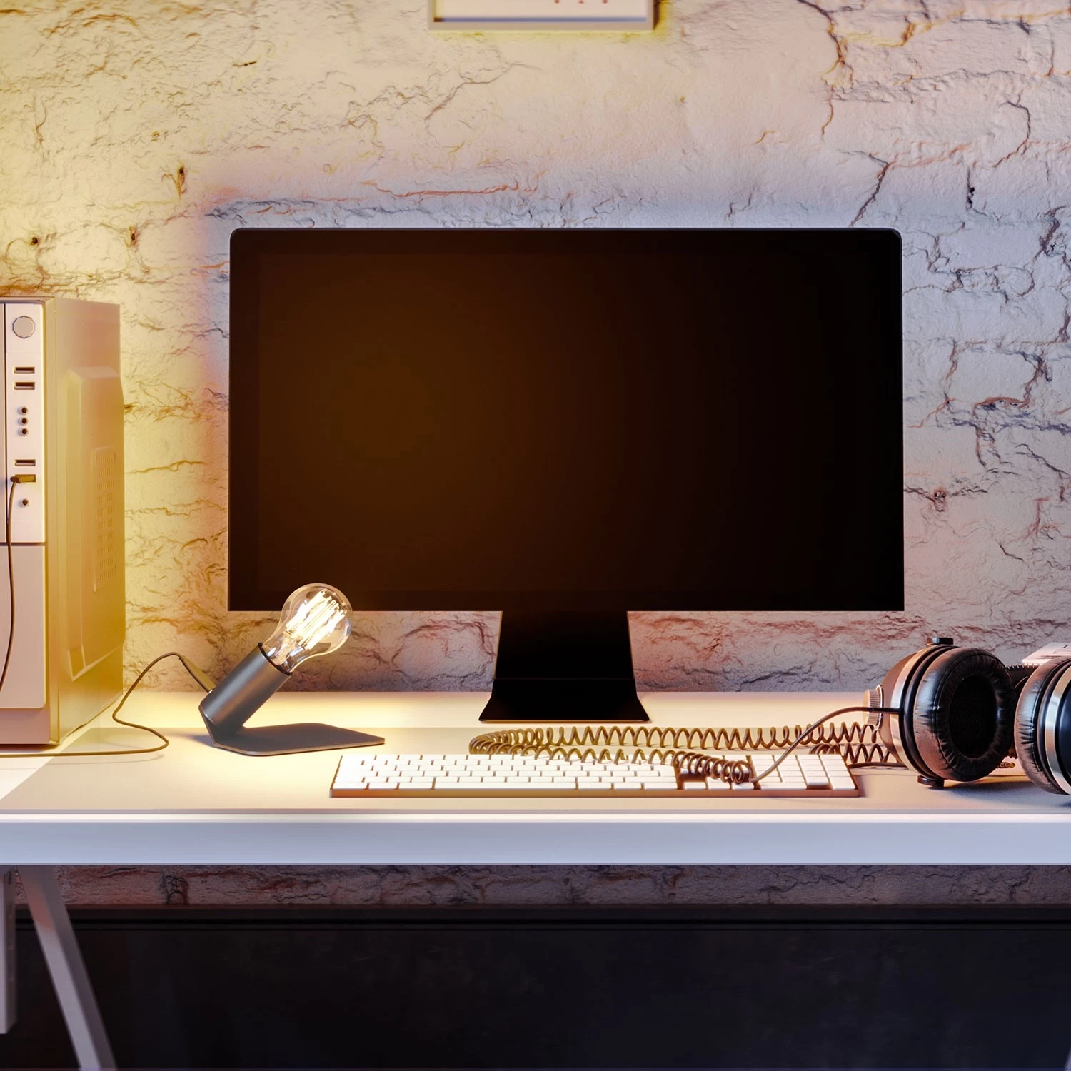 SI!, the first portable lamp without batteries is available in different finishes and we suggest you pair it with the Bebulbs 5V ST64 light bulb for a vintage and refined touch, and with a metal base – which comes with a protective scratch-resistant pad – with lateral fold: the perfect combination between lighting and decor.