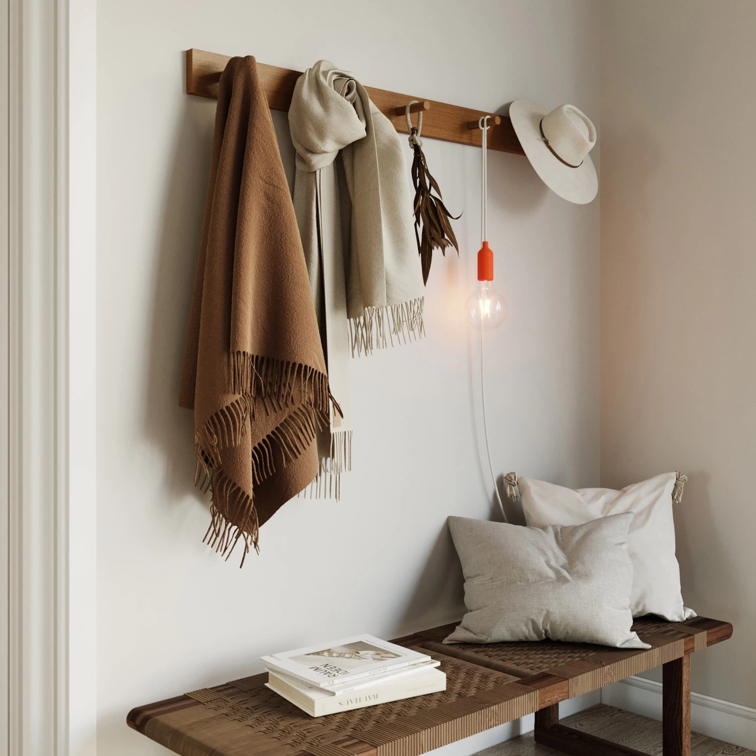 This plug-in lamp is simple and adaptable thanks to the built-in switch installed in the lamp holder and to the variety of available colours and finishes. A reliable lamp for your office, bedroom or corridor. And thanks to our wall supports like Rolé, you’ll be able to create a unique wall lighting solution for your indoor spaces.