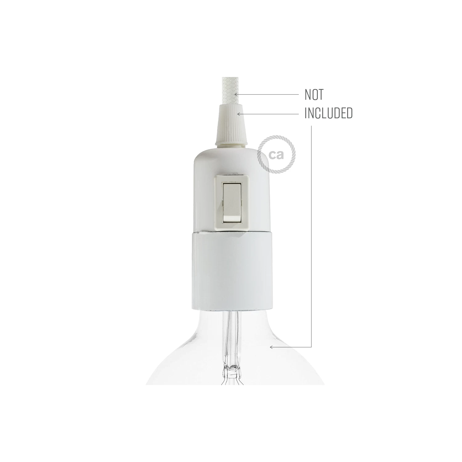 This Smooth Sided Bakelite Phenolic E26 light bulb socket comes with a built in on/off switch at the top of the light bulb socket. It is made in Italy to the highest standards. It’s UL listed and works with standard/medium E26 base light bulbs. A fantastic socket at a great price. This socket works with all our pendant light cables.