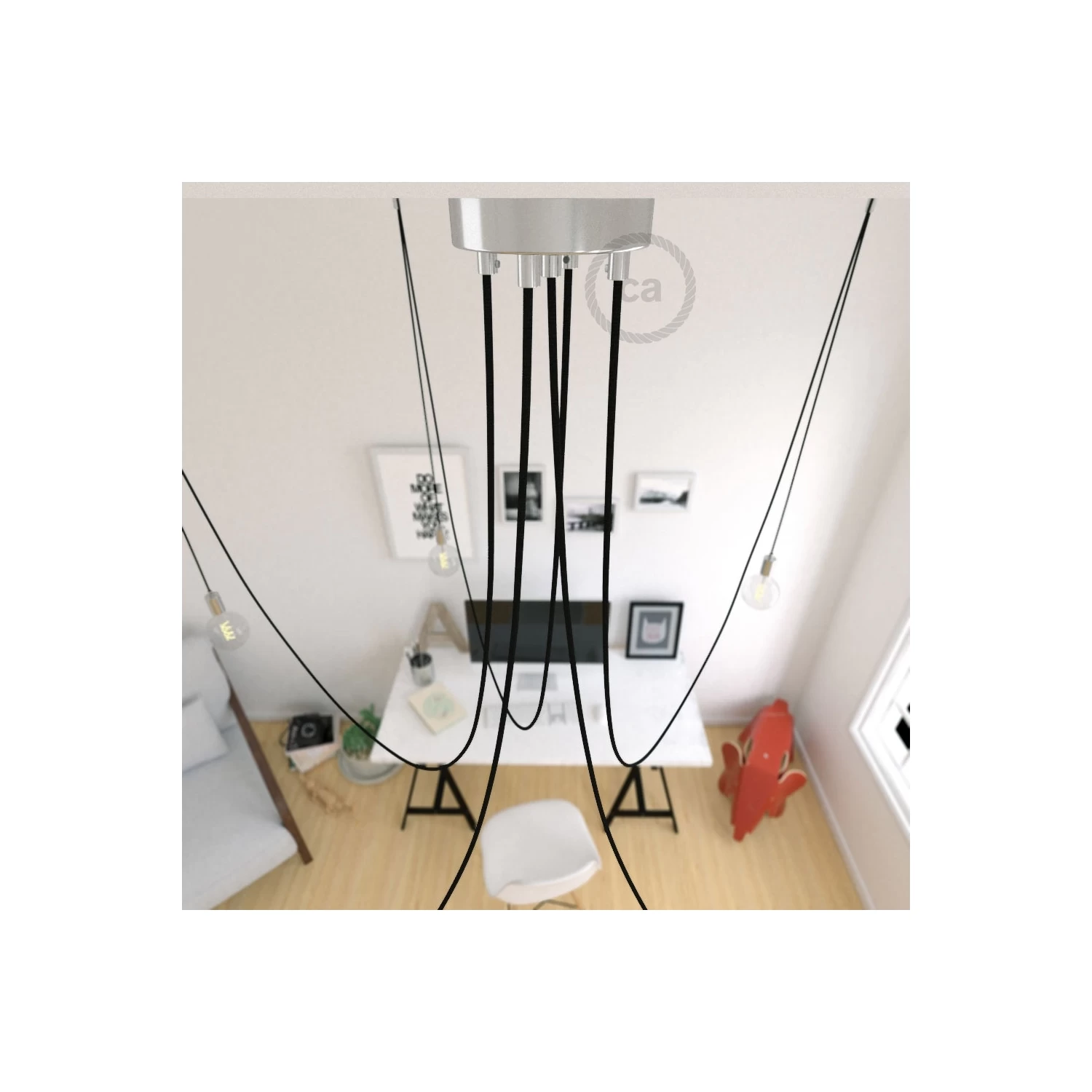 Black and silver: a combination of elegant and never-fashioned colors, perfect for this Spider with Black rayon cable and chromed metal canopy and bulb holder.