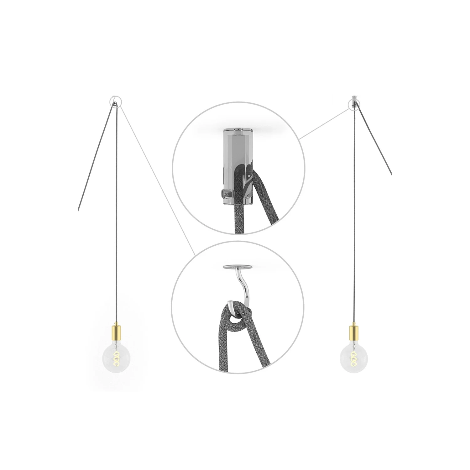 You can configure Spider, the great suspension of Creative-Cables, according to your preferences: you can choose whether to have metal hooks or swag hooks for cable ceiling fixing. In addition, Spider can be purchased in a “DIY” kit or with the single pendants already assembled.
