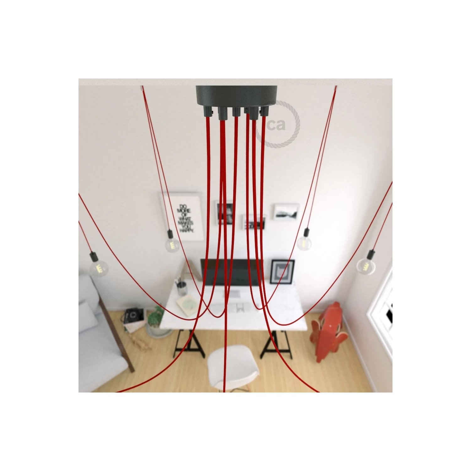 The Spider with Red rayon cable and Black components is the perfect model for lovers of warm colors and modern environments: something that steal the gaze!
