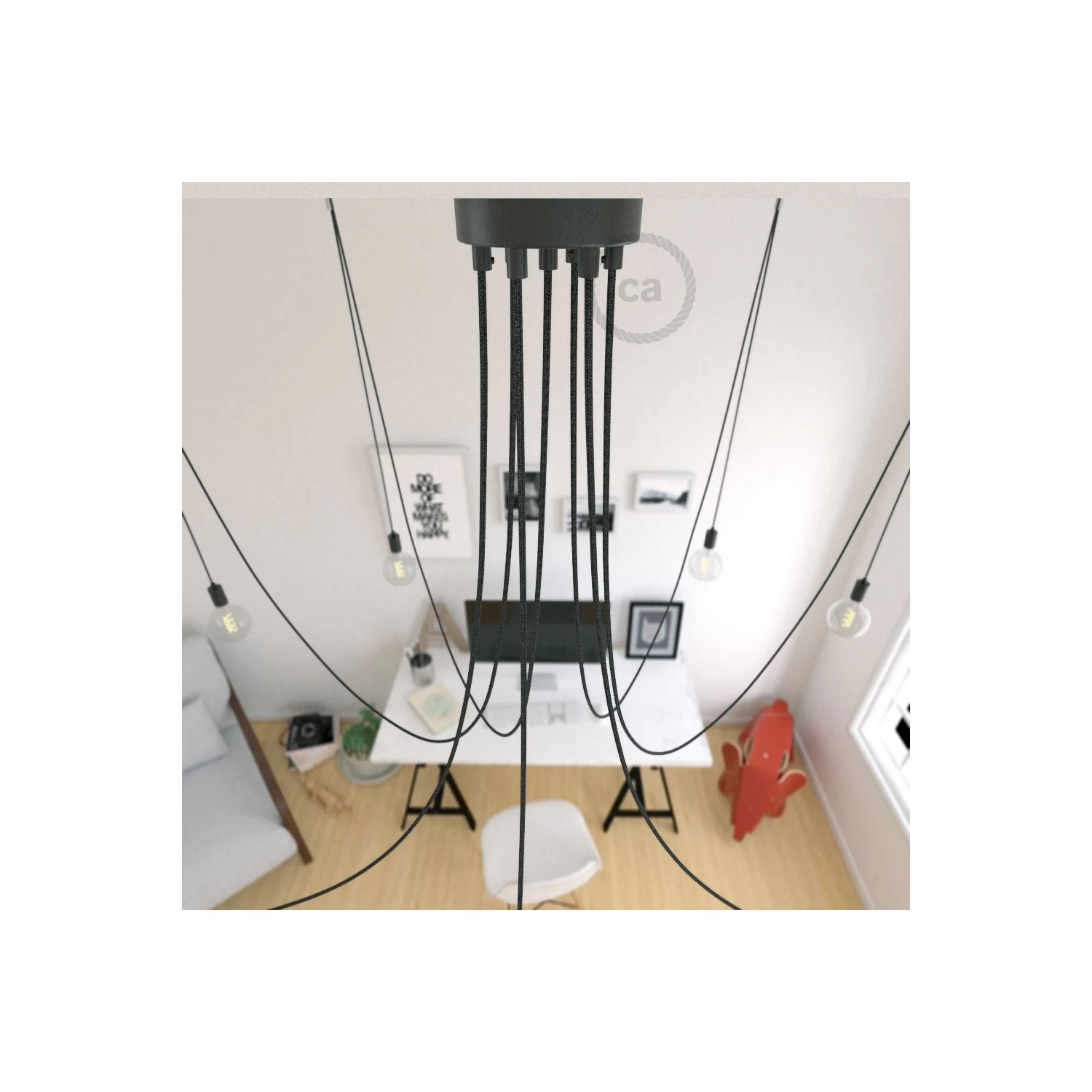 You can configure Spider, the great suspension of Creative-Cables, according to your preferences: you can choose whether to have metal hooks or swag hooks for cable ceiling fixing. In addition, Spider can be purchased in a “DIY” kit or with the single pendants already assembled.