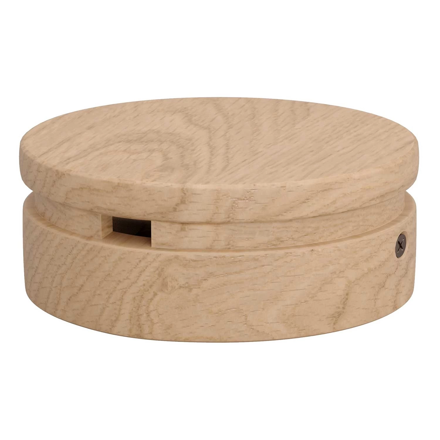 This 5″ diameter wooden canopy cover is used in our Filé system and made for use with our custom string light cables. It attaches and covers your junction box where the power connection comes in. Use this if you want to use our string lights indoors but hard-wired to the power, instead of using a two-prong plug.